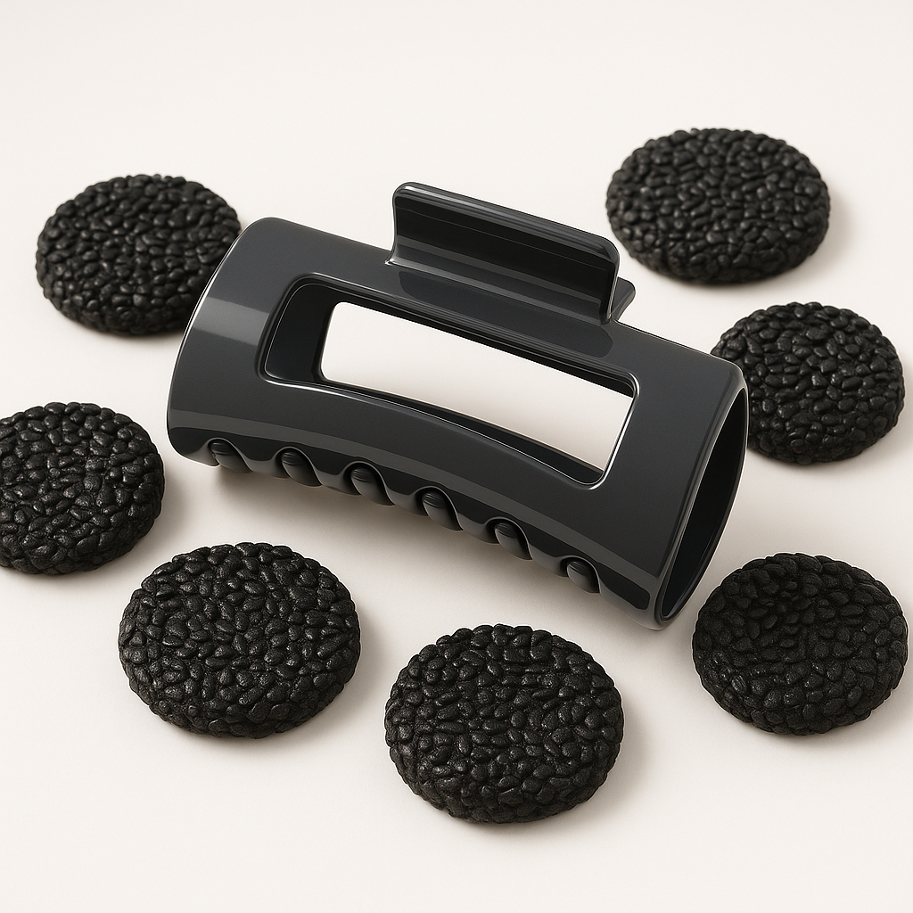 Przeprowadziliśmy wiele testów, aby znaleźć idealną równowagę między mocnym trzymaniem a miękkością. Dopracowaliśmy również kąt zacisku tak, aby klamra obejmowała włosy pewnie, bez nieprzyjemnego ucisku.